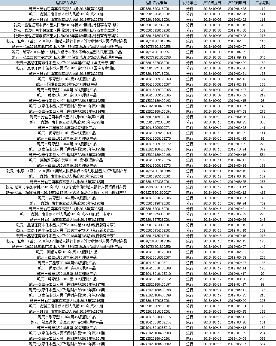 建行存续及在售理财目录20181001-2018